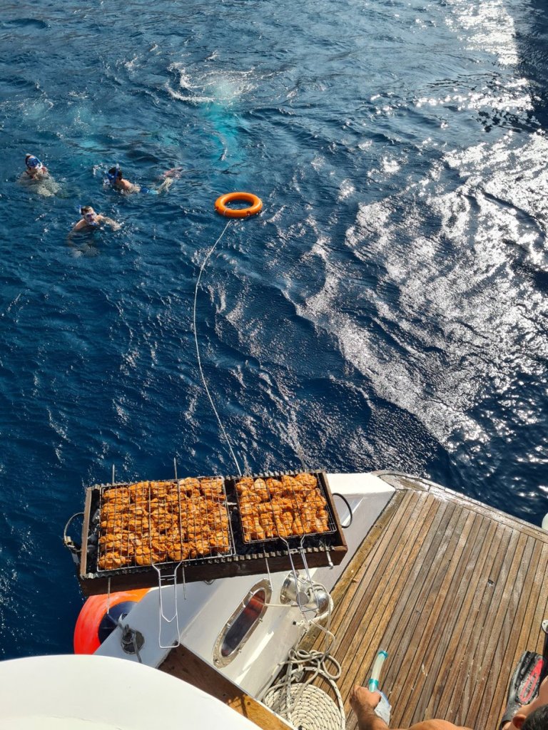 Check-in all’Al Deyafa Hotel, struttura centrale, economica e pulita. Nel pomeriggio ho partecipato a una gita in barca (prenotata tramite operatore locale) con BBQ a bordo: 4 ore di navigazione tra le acque limpide del Golfo di Aqaba, soste per snorkeling nelle barriere coralline, musica e relax. Costo: 30 JOD a persona, pranzo incluso (pesce e carne alla griglia, insalate, pane, bibite).