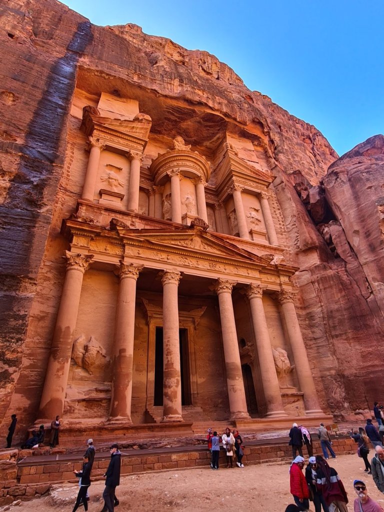 L’ascesa verso Ad-Deir è ripida ma ben segnalata: 800 scalini scavati nella pietra, alternati a piani sabbiosi e punti panoramici. Raggiunta la vetta, la vista sul deserto circostante è impagabile. Le caffetterie beduine sparse lungo il percorso offrono tè caldo e ospitalità.