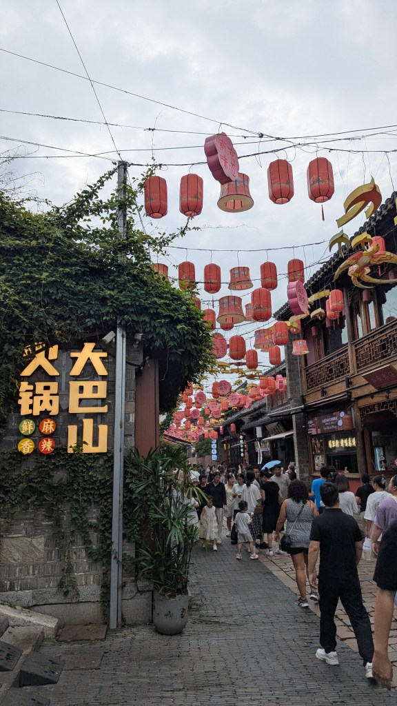 Il pomeriggio lo abbiamo dedicato a girare tra le viette della città vecchia. Nonostante la tranquillità diurna, ogni angolo riserva dettagli curiosi: negozietti pieni di souvenir, braccialetti, collane e set da tè, alcuni dai prezzi più alti della media cinese, ma con un po’ di pazienza si possono fare piccoli acquisti interessanti. Emil, ad esempio, con soli 80 ¥ si è portata a casa 4 braccialetti, 2 collane, un set da tè e un porta zucchero.