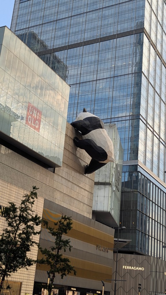 Chengdu ci ha conquistati subito: una città incredibilmente originale, moderna ma con un’anima tradizionale fortissima. Tutto, davvero tutto, ruota intorno ai panda, simbolo indiscusso della zona. Dalle decorazioni in strada alle insegne dei negozi, fino ai lampioni e ai murales: tutto gioca sui colori bianco e nero, rendendo l’atmosfera unica e quasi surreale.