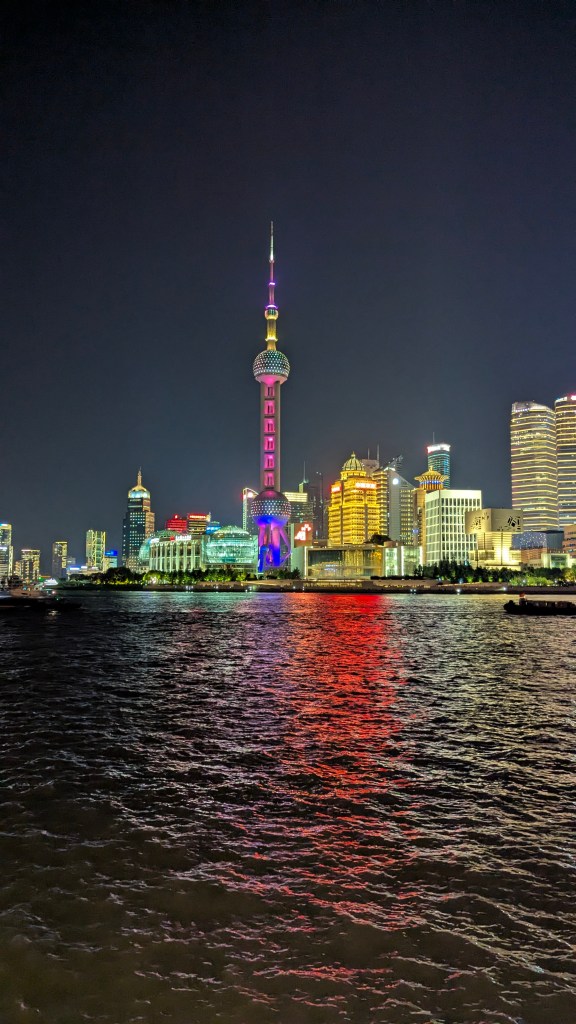 La sera Shanghai cambia volto: lo skyline illuminato è affascinante e ipnotico, con luci al neon, grattacieli riflessi nel fiume e ponti sospesi. La città è incredibilmente affollata, e trovare un Didi libero è quasi impossibile specie dopo le 23 quando le luci si spengono.