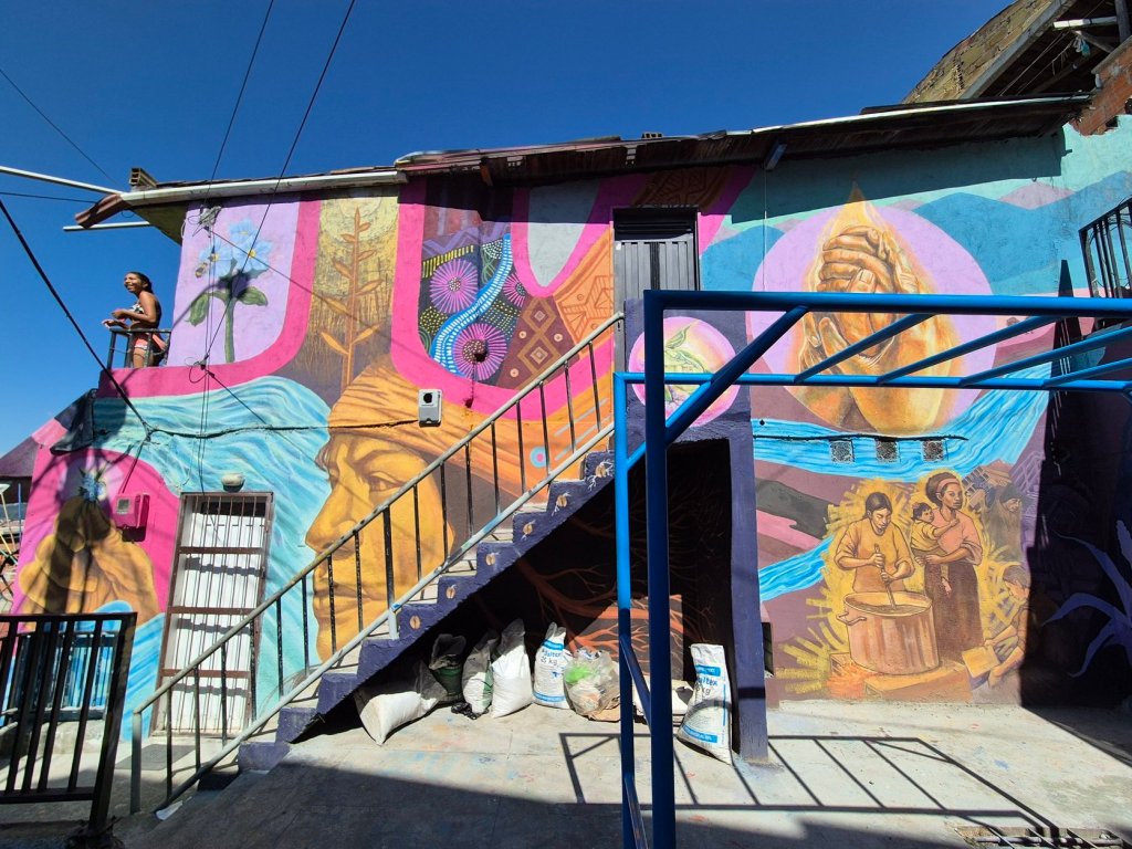 Le scale mobili che collegano i diversi livelli del quartiere sono più di un’infrastruttura: sono il simbolo di una comunità che ha trasformato il dolore in bellezza. I murales raccontano storie di perdita, speranza e rinascita, mentre la musica hip-hop risuona dalle case colorate.