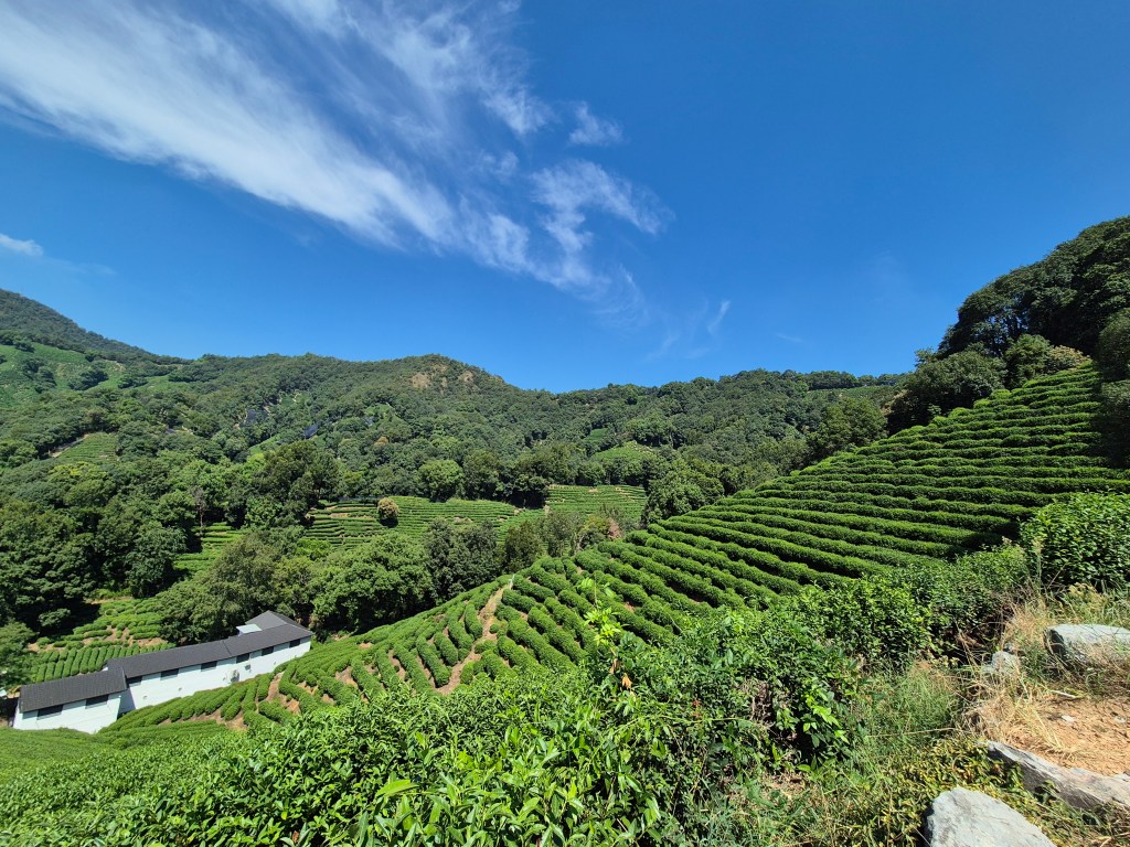 La destinazione è Longjingcun, il secondo villaggio del tè che visito. Qui il panorama è decisamente più bello: colline verdi, filari perfetti, contadini al lavoro. Sembra quasi una cartolina.